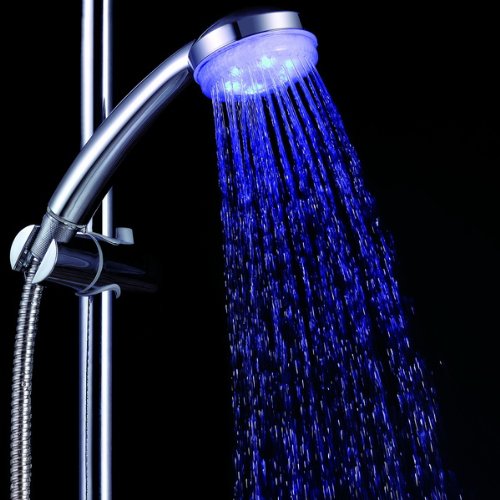 PETSOLA Soffione Doccia A Mano Cromato con Testa A Spruzzo Automatica per Doccia A LED Blu