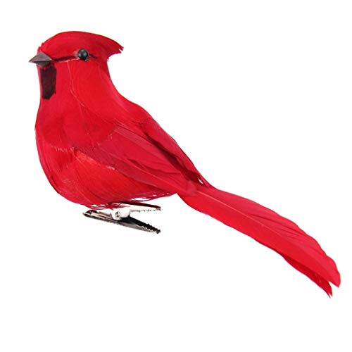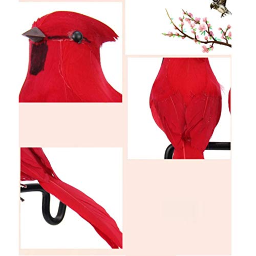 PETSOLA Uccelli Artificiali con Piume, Figure di Uccelli Decorativi Giocattolo per Bambini - Rosso