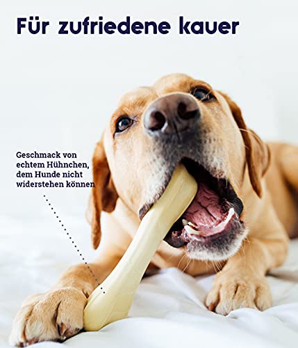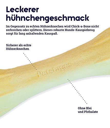 RESISTENTE OSSO DI POLLO ALTERNATIVO: Il nostro osso Chick-A-Bone è un gioco da masticare per cani a base di farina di ossa naturale e con un vero sapore di pollo, per un'alternativa agli ossi di pollo sicura e da leccarsi i baffi!
