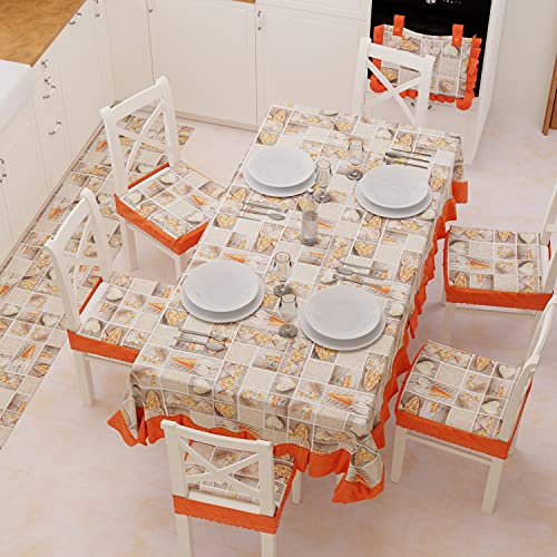 PETTI Artigiani Italiani - Tovaglia, Copritavolo Plastificato con Volant, Copritavola, Copritavolo Esterno Impermeabile in Cotone Disegno Lidia Arancio X12 Posti (140x240 cm) 100% Made in Italy