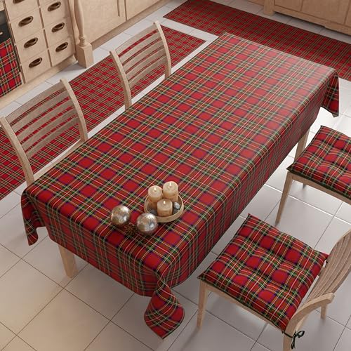 PETTI Artigiani Italiani - Tovaglia Natalizia Antimacchia Rettangolare Copritavolo Natalizio Cucina Disegno Tartan X18 Posti (140x360 cm) 100% Made in Italy
