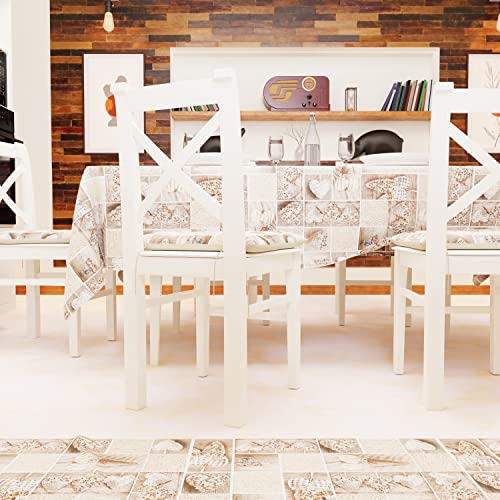 PETTI Artigiani Italiani - Tovaglia, Tovaglia da Tavola, Tovaglia Cucina in Cotone Disegno Lidia Beige X6 Posti (140x180 cm) 100% Made in Italy
