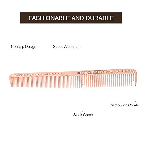 Pettine per capelli in acciaio inossidabile per strumento di bellezza rado in alluminio spaziale, pettine per capelli alla moda e durevole pettine antistatico uso domestico barbiere(Bronzo)