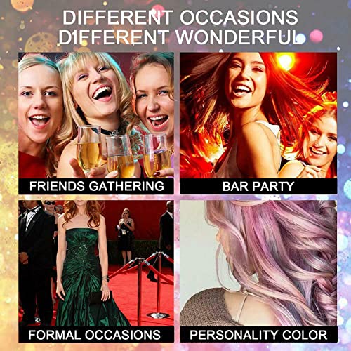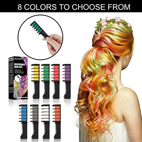 8 colori temporanei: giallo, verde fluorescente, viola, blu, grigio, rosa, bianco, arancione. Puoi usare uno o più colori, basta scegliere il tuo preferito, usarli singolarmente o sfumare i colori, e il pettine per capelli darà i tuoi capelli vibranti come vuoi.
