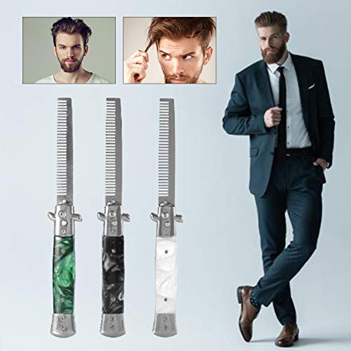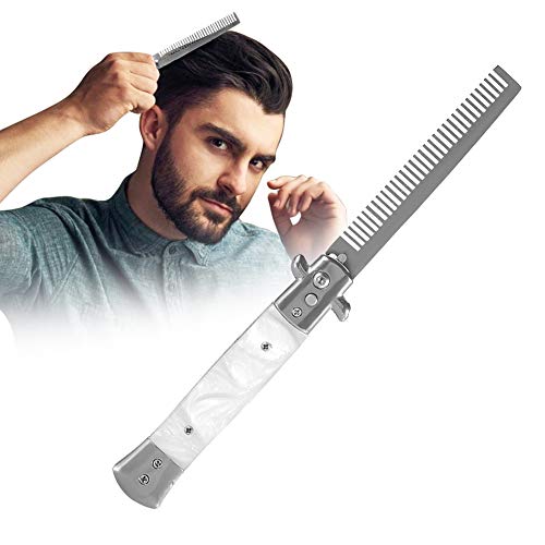 Pettine Per Capelli Pettine Pieghevole in Acciaio Inossidabile, 3 Colori Pettine per Serramanico Capelli per Uomo e Barba Accessori per lo Styling Barba (Bianco)