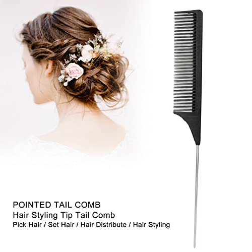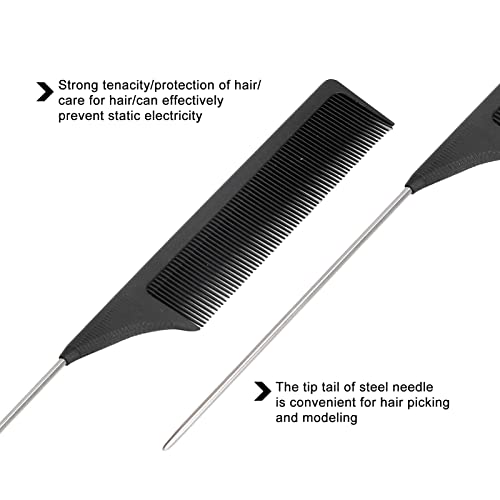 Pettine a Coda con Codone in Acciaio, Pettine Professionale per Sezionare, Cotonare e Acconciare Intricati(Nero)