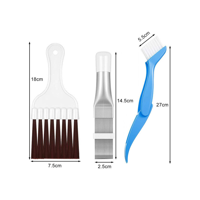3pcs Air Conditioning Fin Comb Gap Brush Kit AC radiatore Cooler condensatore lama pulizia raffreddamento raddrizzamento strumenti di riparazioneCaratteristica:1. Il pettine per la pulizia del condensatore è pulito ed efficiente. La spazzola per alette in metallo funziona più a lungo ed è più affidabile rispetto al pettine per alette in plastica.2. Il pettine per alette del condizionatore d'aria è realizzato in acciaio inossidabile, che è sufficiente per pulire tutto lo sporco e mantenere la qualità delle alette o delle bobine del condensatore.3. Facile da usare, il detergente per bobine del condizionatore d'aria è semplice da usare e flessibile abbastanza per non danneggiare il dissipatore di calore della bobina;