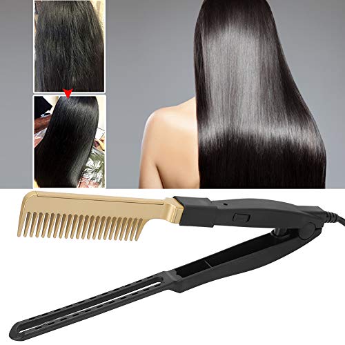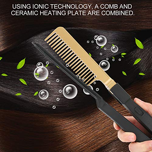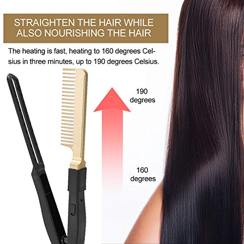 Pettine riscaldante elettrico, Pettine per acconciature resistente al calore in ferro piatto, Spazzola lisciante per capelli da utilizzare a umido, Strumento portatile per parrucchiere(EU)