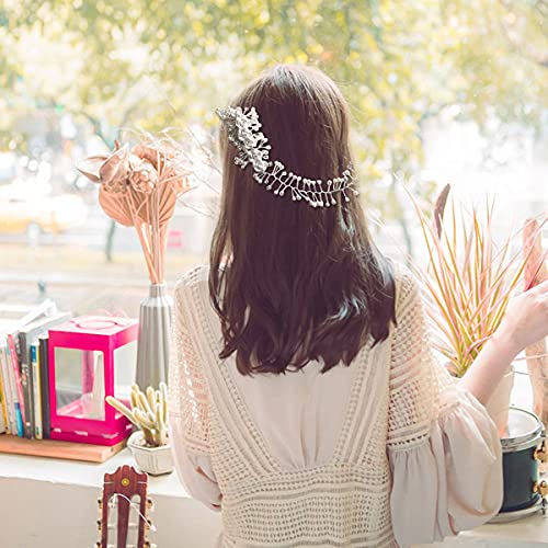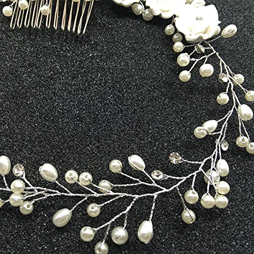 Pettine per Sposa, Xiuyer Argento Coroncina da Sposa Elegante Ornamnto per L'acconciatura Della Sposa Accessorio da Matrimonio con Fiore e Perle per Donne Ragazze