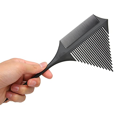 [Design a doppia faccia]: questo pettine per l'evidenziazione del pettine per tinture per capelli adotta un design a doppia faccia, il design a biforcazione su un lato, i denti del pettine fini e densi sull'altro lato, i capelli facili da pettinare durante la tintura, soddisfano le tue diverse esigenze