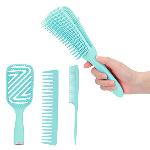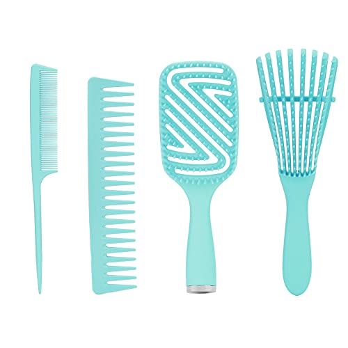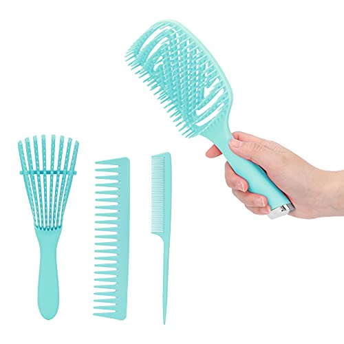 Set di 5 Pettini Per Acconciature, Pettine a Coda di Topo Pettine a Denti Larghi Pettine Districante Per Capelli Africani Testurizzati Crespi Ondulati Ricci Bagnati Secchi Olio Capelli Spessi(verde)