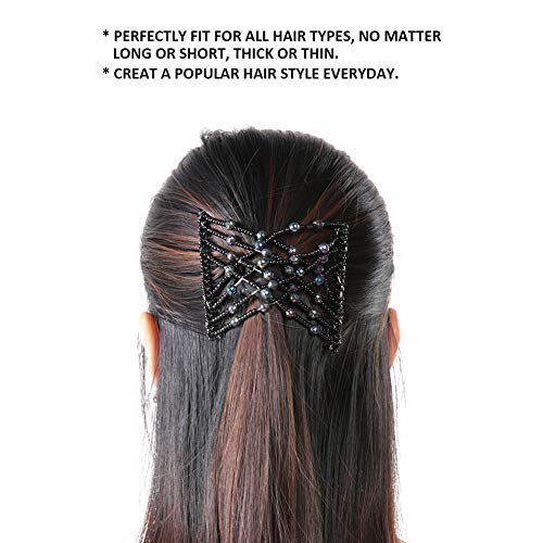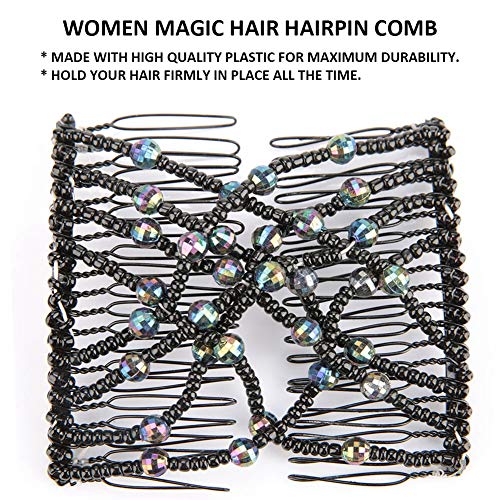 Pettini per capelli con elastico di HairZing - Doppio pettine per pettine di capelli a farfalla spessa e flessibile Magia elastica per capelli per acconciatura femminile Accessori per capelli(Black)