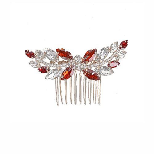 Pettini per Capelli da Sposa Piccoli, 2 Pezzi Cristallo da Sposa Headpiece Laterale per le Donne Ragazze, Rhinestonel Clip Accessori per Capelli (Rosso)
