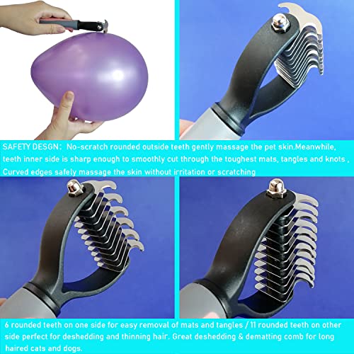 ✪DESIGN DI SICUREZZA: i denti esterni arrotondati antigraffio massaggiano delicatamente la pelle dell'animale. Nel frattempo, il lato interno dei denti è abbastanza affilato da tagliare senza problemi i tappetini, i grovigli e i nodi più duri, i bordi curvi massaggiano in modo sicuro la pelle senza irritare o graffiare