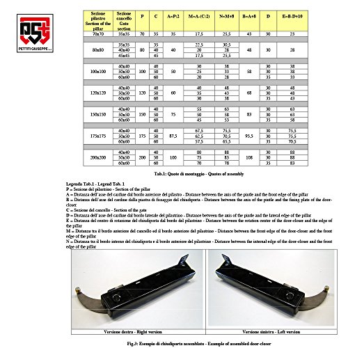 Pettiti Chiudiporta Pneumatico Regolabile per Cancelletti Cancelli Ferro Alluminio 2200