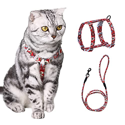 【Facile da indossare & Regolabile】L'imbracatura per gatti ha 2 fibbie di regolazione al collo, 1 fibbia di regolazione e 1 fibbia a sgancio rapido al petto, facile da mettere e togliere. Dimensioni: S: petto 18-30 cm, collo 14-22 cm. M: petto 26-40 cm, collo 22-32 cm