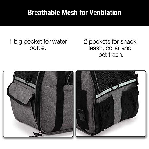 PETTOM trasportino per cani e gatti pieghevole impermeabile con tracolla morbida imbottita per viaggiare in aereo, auto o treno, per animali domestici (grigio, L: 47 x 23 x 28 cm)