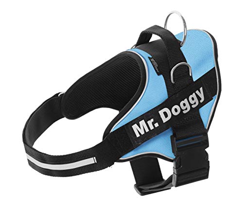 Pettorina per cani personalizzata - Imbracatura per cani riflettente e sicura - Include 2 targhette con nome - Taglia piccola, media e grande - Qualità e resistente (M 12,5-20KG, TURCHESE)