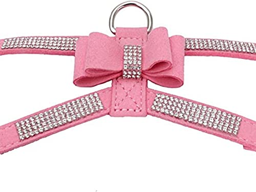 Pettorina per cuccioli+guinzaglio Set Bling strass Pet Dog Harness Vest con Bowknot Rosa M