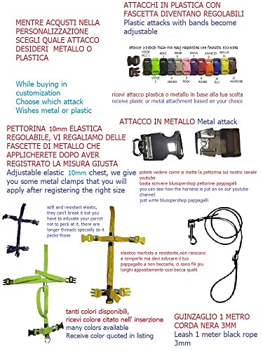 pettorine made in italy artigianali in elastico di qualita,molto piu comode per il pappagallo perche al collo c'e' una corda 3mm e fasce nastro 10 mm tutto elastico di qualita'