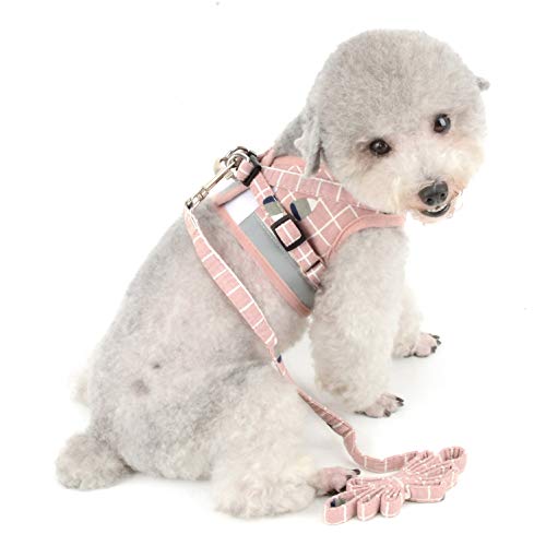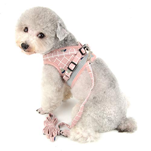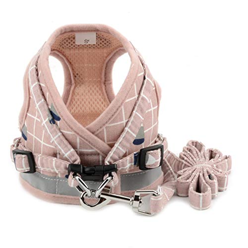 Set di pettorina e guinzaglio per cani di piccola razza e gatto, reflctive No pull morbido maglia cucciolo giacca,anelli a D, regolabile per passeggiate escursionismo all'aperto, rosa XL