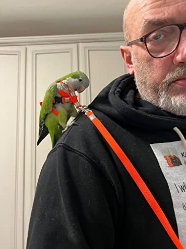 PETTORINA nastro elastico 10mm con 2 attacchi PLASTICA SGANCIABILI REGOLABILI con GUINZAGLIO di 95 CM PER PAPPAGALLI calopsite inseparabili PARROCCHETO CONURO E PER ALTRE RAZZE + 1 portachiavi,