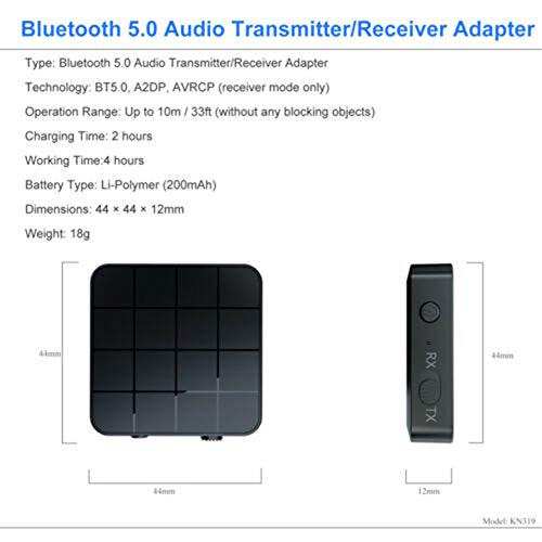Super-Portable Audio-Streaming Power:L'adattatore è di soli 44 mm (1,73 pollici), ma ha potenti funzionalità di streaming audio wireless. Inserire questo trasmettitore e ricevitore nello zaino o nella borsa del computer portatile e portarlo in viaggio senza il minimo sforzo.