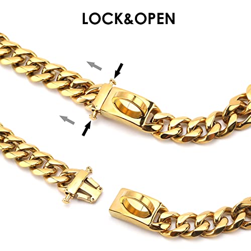 Petyoung - Collare a catena per cani in oro, con fibbia in metallo e anello a D