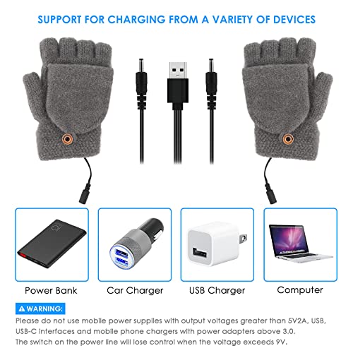 Petyoung Guanti riscaldati USB per donne e uomini, guanti invernali per computer portatile, guanti caldi per lavoro a maglia, scalda senza dita per ragazzi e ragazze