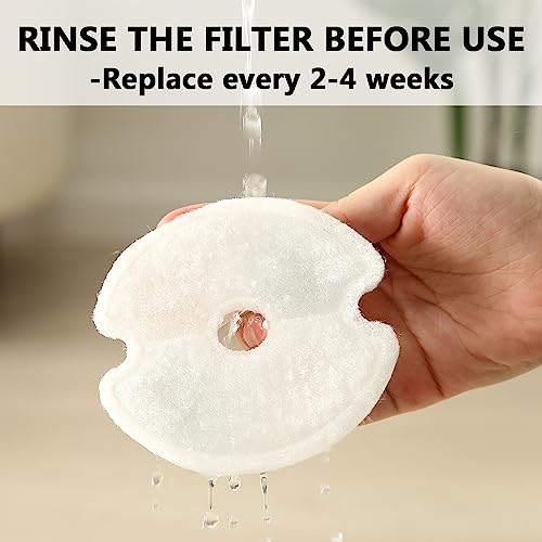 【Sostituzione del Filtro】Sciacquare i filtro fontanella gatti con acqua corrente ogni volta che si cambia l'acqua della fontana e, in base alla frequenza di abbeveraggio del vostro animale domestico e al numero di animali domestici che utilizzano la fontana per gatti, sostituire il filtro della fontana per animali domestici ogni 2-4 settimane.