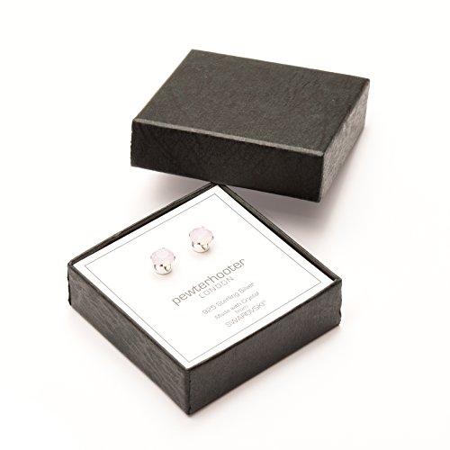 Pewterhooter 925 Orecchini in argento fatti a mano con vetro Rose Water Opal da SWAROVSKI®.