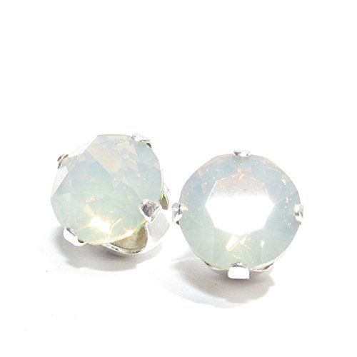 Pewterhooter 925 Orecchini in argento fatti a mano con vetro Light Grey Opal da SWAROVSKI®.