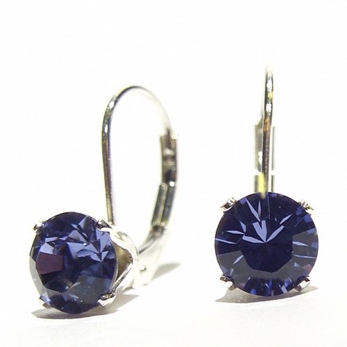 Pewterhooter - Orecchini con cristallo Swarovski blu tanzanite, chiusura a monachella, argento sterling, confezione regalo. Splendidi gioielli per persone molto speciali