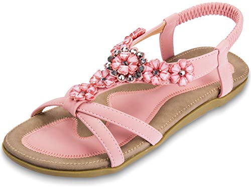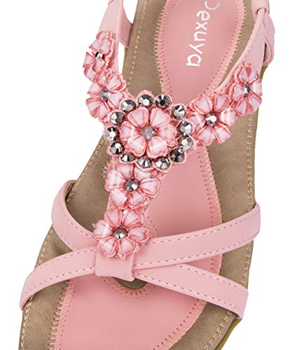 Pexuya Sandali da Donna da Estate, Piatti, Modello con Infradito 309 (Rosa, 36)