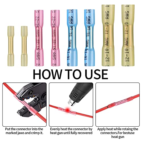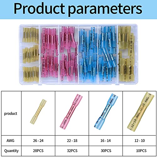 100 Pezzi 10-26 AWG Connettori per Cavi Impermeabili Kit, Terminali Termorestringenti, Terminale a Crimpare, Connettori Filo Impermeabile Giunzioni, Terminali a Saldare - Giallo, Rosa, Blu