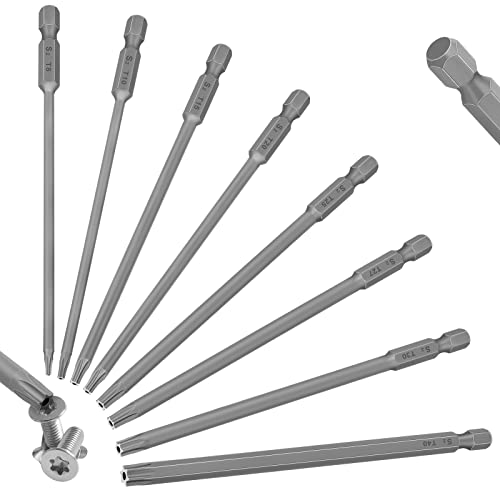 8 Pezzi 150mm Cacciaviti Torx Set, Inserti Torx Acciaio Legato S2 Punte Magnetico per Cacciavite Bit da 1/4 di Pollice Esagonale,Set Punte per Cacciavite Torx per Riparare Macchinari,Attrezzature
