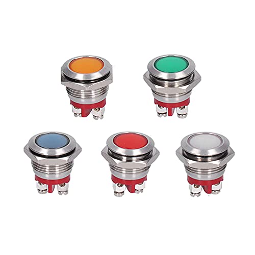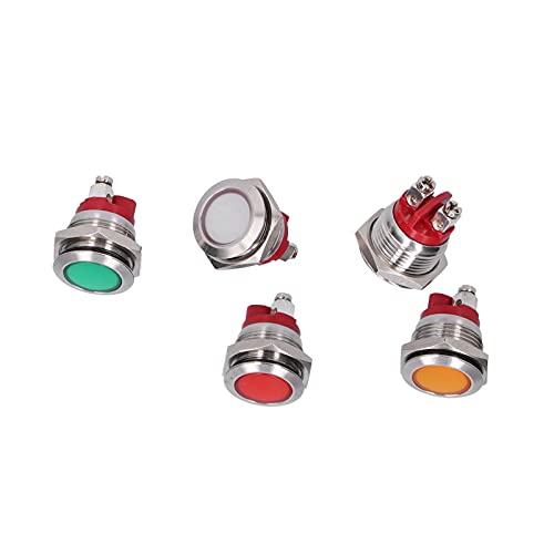 5 pezzi 16mm AC/DC 12-24V LED incorporato Indicatore luminoso in metallo Lampada di segnalazione impermeabile Lampada di avvertimento sul cruscotto (Verde Arancione Rosso Blu Bianco 5 pezzi)