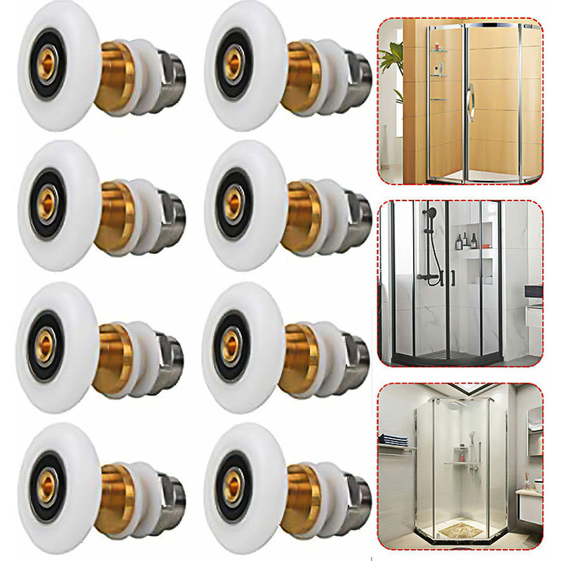 12 mm consigliati. spessore 4-6 mm. Per porte doccia piatte o ad arco, cabine per massaggi, bagni turchi e bagni. Caratteristiche Rullo in nylon muto: nessun rumore quando si apre la porta della doccia. i rulli lo aiutano a scivolare dolcemente. Le loro ruote bianche premium si fondono perfettamente nella tua doccia.,Materiale di alta qualità: l'uso di ottone con rulli in nylon rende i rulli durevoli e resistenti all'usura. Facile da pulire, liscio e liscio. Adatto: questi rulli si adattano a porte doccia in vetro spesso 4-6 mm. Il diametro del rullo doccia è di 25 mm, comodo hardware per porte scorrevoli in vetro.,Facile da usare: il binario scorrevole del bagno è facile da spostare e installare. Può anche spostare la porta per risparmiare spazio. Installazione semplice: i rulli della porta della doccia sono facili da spostare e