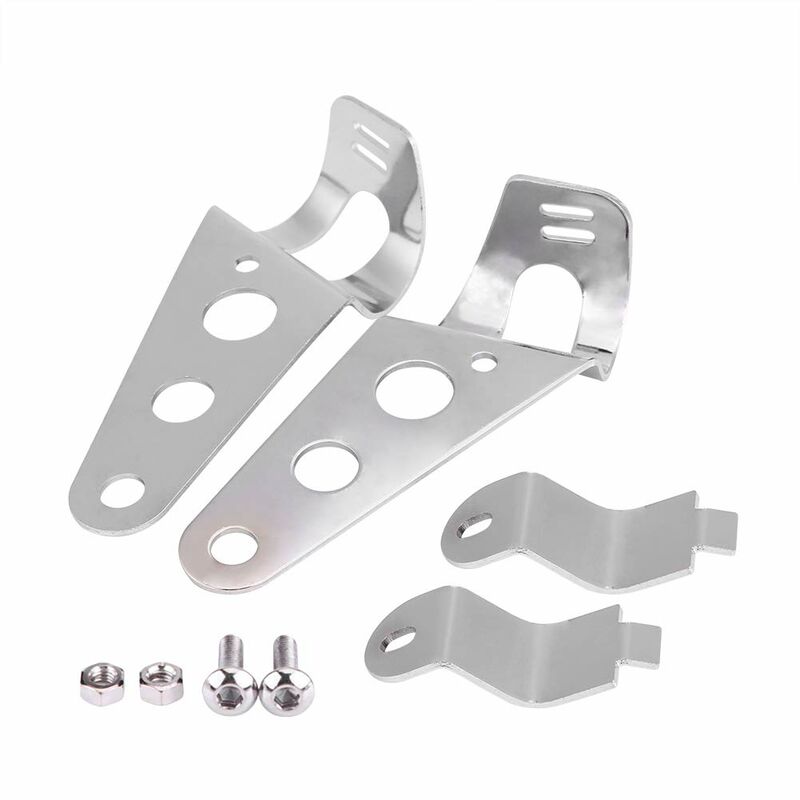 Montaggio - Staffe di montaggio faro adatte per Honda, Kawasaki, Suzuki, Yamaha, Triumph, Norton, BSA, Ducati e motociclette con steli forcella da 28mm-34mm. 【【Dimensioni installazione】Dal centro della forcella al centro del foro più lontano, è di circa 4 3/8. Il foro di montaggio del faro è di 3/8. Viene fornito con bulloni di montaggio. Sostituisci perfettamente il tuo vecchio o usurato. 【Design regolabile】 Sono completamente regolabili per adattarsi a tubi forcella da 22 mm a 32 mm di diametro. Facile da installare, 100% nuovo e di alta qualità . Facile da installare, adatto per Honda, per Kawasaki, per Suzuki, per Yamaha, per Triumph, per Norton, per moto BSA e con tubi forcella da 28 mm a 34 mm. Tieni presente che tutti i nomi di marchi visualizzati sono solo a scopo dimostrativo di compatibilità