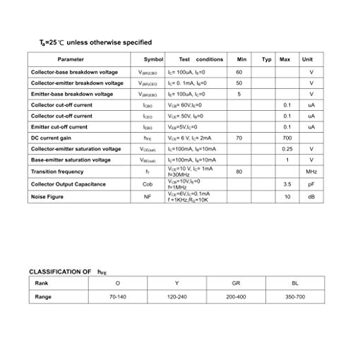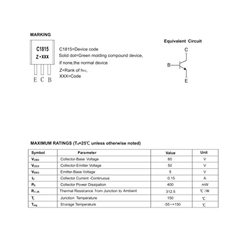 20 pezzi 2SC1815GR 2SC1815 NPN Transistor TO-92 50V 150MA 400mW marcatura C1815