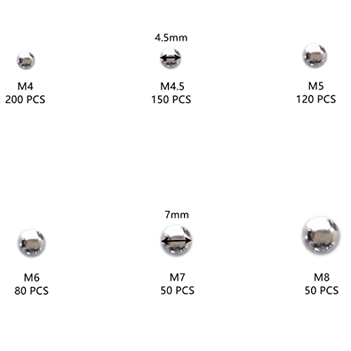 【Dimensioni】: Ci sono sei tipi di diametri di palla: 4mm (200pz), 4.5mm (150pz), 5mm (120pz), 6mm (80pz), 7mm (50pz), 8mm (50pz), per un totale di 650pz.