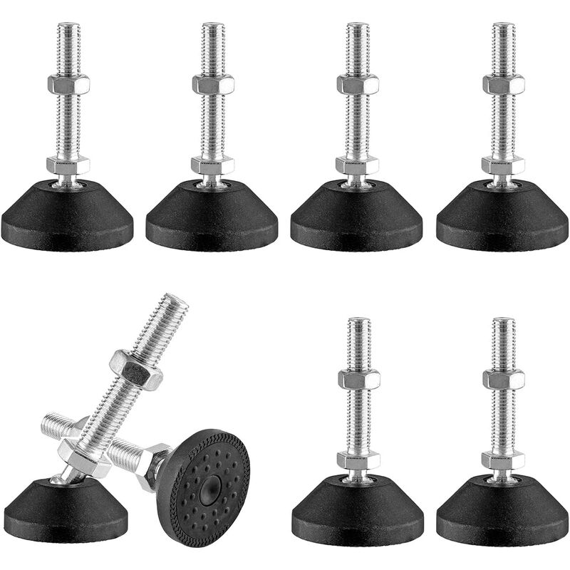 Grado industriale - : Il piedino di livellamento è realizzato in acciaio al carbonio di alta qualità, la superficie, compresi i dadi, è nichelata a 360° e il dado esagonale sul piedino di livellamento può essere ruotato per regolare l'altezza. Il cuscino inferiore è realizzato in nylon di alta qualità (una plastica poliammidica), rinforzato con fibra di vetro, resistente e anticorrosione, non facile da arrugginire, per soddisfare le tue esigenze di base. 【Carico massimo 300 kg】: Il diametro del nostro pad inferiore regolabile è di 40 mm, con particelle antiscivolo nella parte inferiore, che ha un migliore effetto di presa e non è facile da scivolare. Carica massima: 300 kg, molto adatto per l'installazione a pavimento. 【Piedino di livellamento inclinabile】: La parte inferiore della vite di fermo M8 è una struttura a testa sferica. La vite può essere regolata e inclinata di 15° per adattarsi all'oscillazione della vite a qualsiasi angolazione. È adatto a tutti i tipi di pavimenti