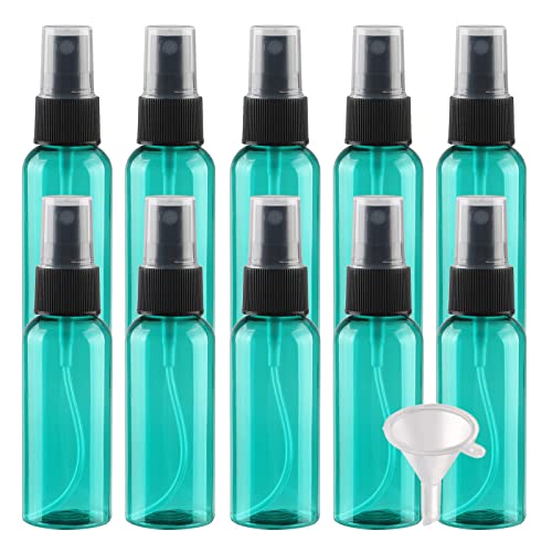 10 Pezzi 50ml Flacone Spray Vuoto Plastica Verde, Piccolo Flacone Spray per Nebbia Riutilizzabile Portatile con Testina di Spruzzo Nera, Bottiglia di Profumo, Cosmetica, Viaggio con 2x Imbuti