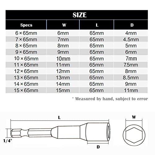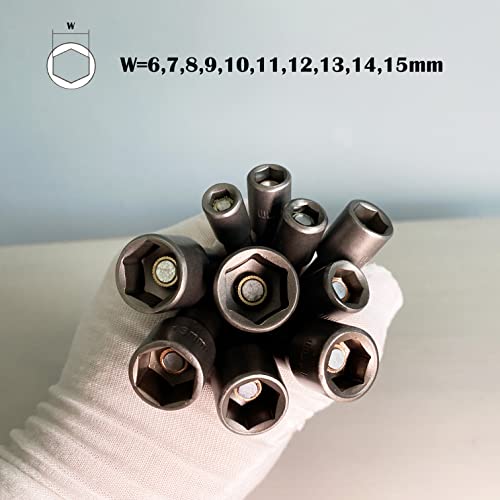 10 Pezzi 6-15 mm Maniglia Adattatore Magnetico del Set di Bussole, 1/4" Maniglia Adattatore di Bussole Esagonali Strumento Adattatore di Bussole