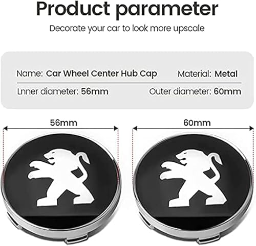 4 Pezzi 60mm Coprimozzi Auto per Peugeot 3008 307 408 508 308 4008 5008, Tappi Coprimozzo Antipolvere Anti Ruggine Tappi Centrali Ruota Centrale Coprimozzo Copri,Grey