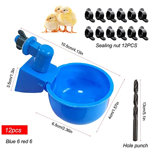 12 Pezzi Abbeveratoio Per Galline Automatico Abbeveratoio Automatico Per Galline Abbeveratoio Galline Per Uccelli, Quaglie, Piccioni, Galline E Pulcini Con Punzonatrici, 6 Blue, 6 Rosse Con 12 Viti