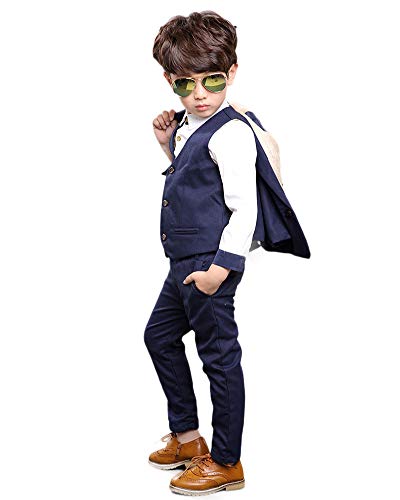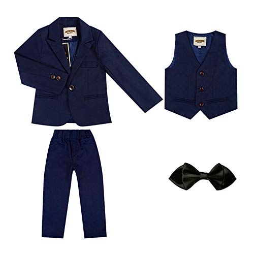4 Pezzi Abiti Set di Vestiti da Bambino Gentile Set Abito Giacca + Gilet + Papillon +Pantaloni Abbigliamento Ragazzo Costume Formale per Matrimonio,Blu-4 Pezzi,150