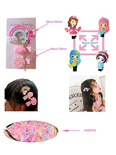 Set 24 pezzi di accessori per capelli per ragazza, fermagli per capelli per bambini, fermagli per capelli, bottoni a pressione, fermagli per capelli, neonate con 1000 elastici