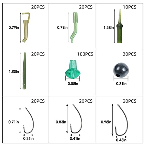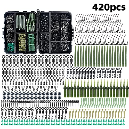 420 Pezzi di Set di Accessori per La Pesca alla Carpa, Ingranaggio Girevole A Fagiolo con Gancio, Tubi Inclusi, Girella Girevole, Perlina da Pesca
