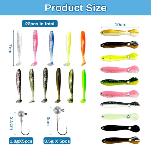 Materiale Eccellente: Gli Testine Piombate Spinning e acciaio al tungsteno sono affilati e resistenti, non si danneggiano facilmente, possono agganciare pesci di peso elevato e possono essere riutilizzati. Il pesce bionico bicolore con coda a T e il Shad Spinning con coda ondulata, realizzati in PVC di alta qualità, sono piccoli, morbidi e realistici.